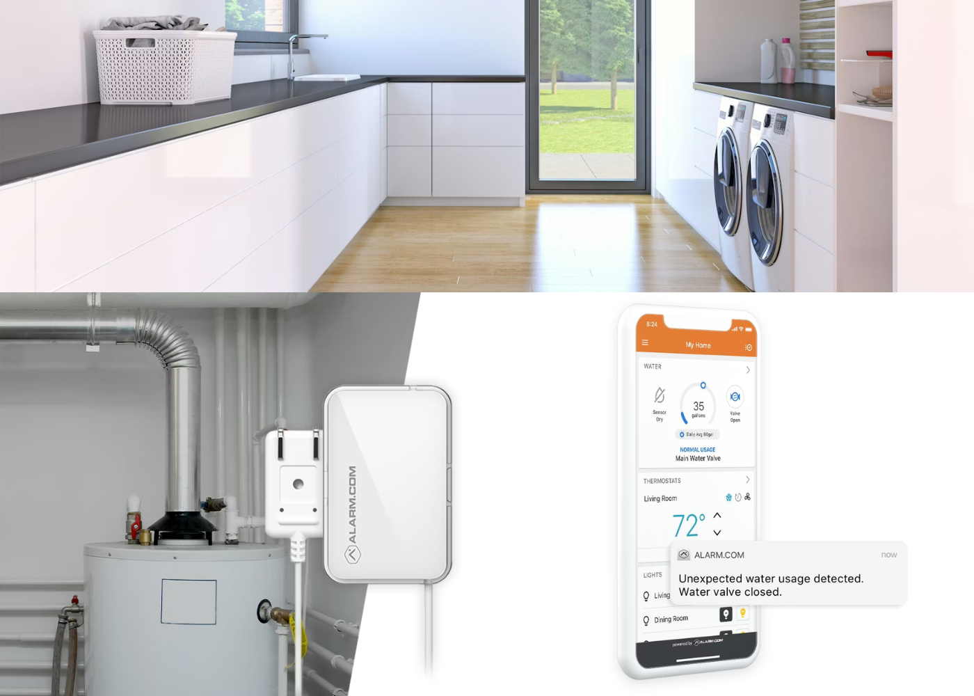 Designed to help prevent costly damage before it spreads, Alarm.com water management solutions add smarter visibility and automated control to connected plumbing protection.